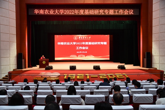 为全面推进学校基础研究高质量发展,加快科技强校的建设步伐,围绕“汇聚大团队,构建大平台,承担大项目,产出大成果”的总目标,日前,学校2022年基础研究专题工作会议在丁颖礼堂召开。校长刘雅红、副校长仇荣亮出席会议。各二级单位党委书记、院长、科研副院长、科研秘书、省部级以上重点平台负责人,以及科研人员参加了此次会议,会议由科学研究院院长谢青梅主持。