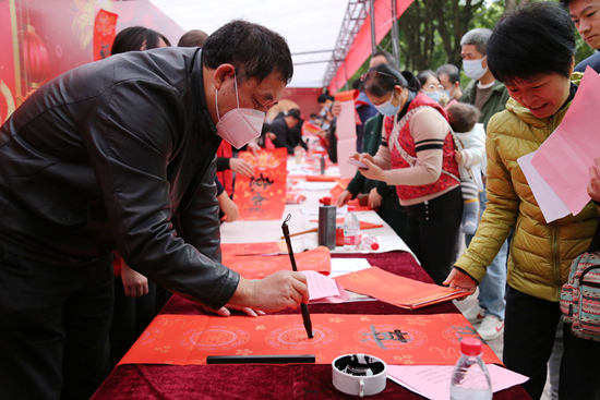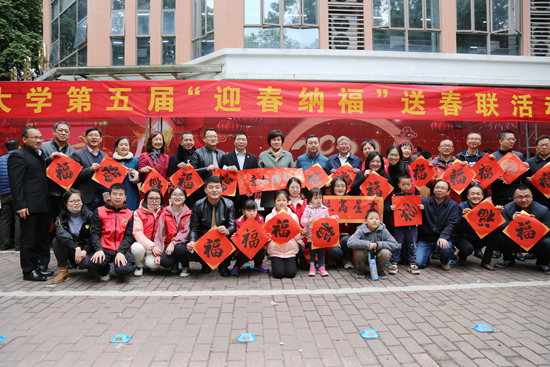 春风万里辞旧岁,笑语千家迎新春。为进一步深化党史学习教育“我为群众办实事”实践活动,弘扬中华民族优秀传统文化,营造喜庆祥和的新春佳节氛围。1月18日上午,乐竞在线注册第五届教职工“迎春纳福·送春联”活动在绿榕园小广场举行。校长刘雅红、校党委副书记邓国安、副校长蒋育燕亲临活动现场,挥毫送福。