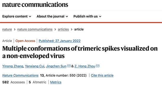 2022年1月27日,动物科学学院博士生张以农在学术期刊Nature Communications上发表题为“Multiple conformations of trimeric spikes visualized on a non-enveloped virus”的研究论文(论文链接:https://www.nature.com/articles/s41467-022-28114-0)。该论文首次解析了家蚕质型多角体病毒(BmCPV病毒)spike蛋白的高分辨率三维结构。乐竞在线注册动物科学学院为第一完成单位(亚热带桑蚕种质资源保护与安全生产工程技术研究中心/广东省农业动物基因组学与分子育种重点实验室),博士研究生张以农为第一作者,这也是张以农2019年以并列第一作者在Nature Structural & Molecular Biology上(https://www.nature.com/articles/s41594-019-0320-0)发表题为“Conservative transcription in three steps visualized in a double-stranded RNA virus”文章的后续研究。