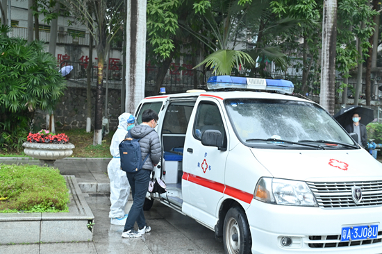校医院将体温异常同学护送至指定隔离点