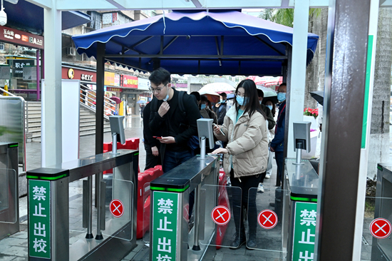 经查验健康码、行程码和48小时内核酸检测阴性证明后,返校同学刷卡或刷脸测温