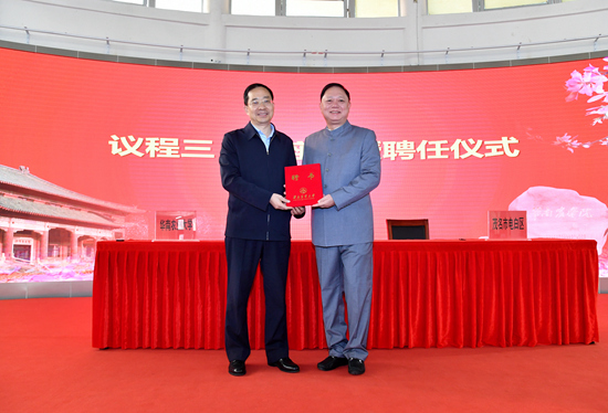 仪式上,王斌伟为电白区工商联合会二届名誉主席、金科伟业集团(国际部)总经理梁仲景先生颁发客座教授聘书。