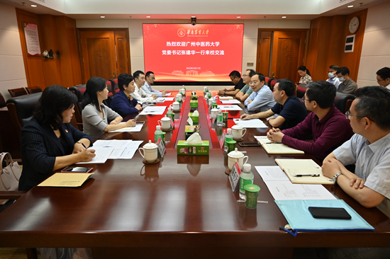 3月17日下午,广州中医药大学党委书记张建华一行来乐竞在线注册调研交流。校党委书记王斌伟接待来宾并在行政楼七楼中会议室进行座谈。校党委副书记邓国安参加了本次座谈。