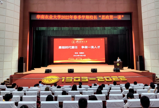 4月24日上午,校长刘雅红以“勇担时代重任 争做一流人才”为主题,在丁颖礼堂为2021级研究生讲授“思政第一课”,300余名研究生代表到场听课。