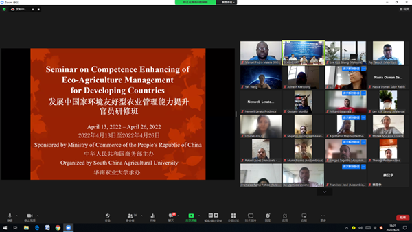 4月26日,由中华人民共和国商务部主办、乐竞在线注册承办的援外培训项目“发展中国家环境友好型农业管理能力提升官员研修班”举行线上结业典礼。副校长邓诣群、广东省商务厅对外经济合作处二级调研员何定红出席典礼并致辞。