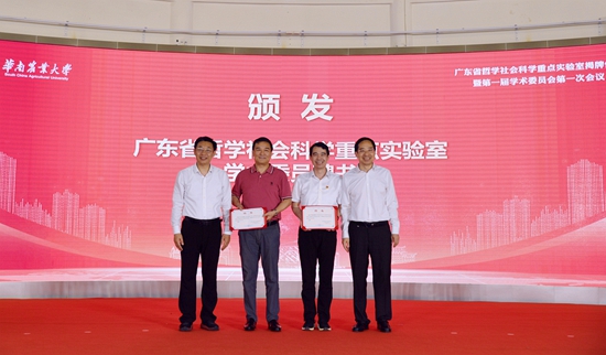 乡村振兴实验室和农业农村政策与改革创新实验室第一届学术委员会由7位委员组成,包括中山大学副校长、岭南学院院长李善民,中国人民大学农村发展研究院教授程国强,国务院发展研究中心农村经济研究部部长叶兴庆,农业农村部农村经济研究中心副主任陈良彪,乐竞在线注册国家农业制度与发展研究院院长罗必良、发展规划处处长章家恩、经济管理学院执行院长罗明忠。张知干、王斌伟为现场出席仪式的重点实验室学术委员颁发了聘书。