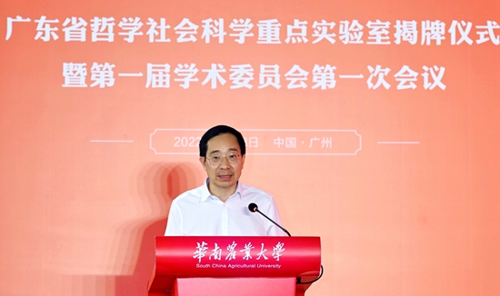 张知干在致辞中指出,近年来,省社科联联合部分高校在全国率先创建哲学社会科学重点实验室,旨在通过多层面、宽领域、大纵深推进学科交叉融合,革新人文社科研究的路径、方法、范式,加快建构中国自主的知识体系。他强调,华农矢志强农兴农百余载,有能力有条件在加快构建中国特色哲学社会科学进程中书写更加厚重的华农篇章。一是要坚定不移坚持以习近平新时代中国特色社会主义思想为指导。要自觉以回答中国之问、世界之问、人民之问、时代之问为学术己任,以彰显中国之路、中国之治、中国之理为思想追求,努力展现当代中国哲学社会科学工作者的时代风采。要忠实践行以人民为中心的研究导向,努力多出经得起实践、人民和历史检验的研究成果。二是要矢志不渝打造学术赋能乡村振兴的创新高地。要善于运用习近平总书记教给我们的世界观和方法论来观察大局大势、思考前沿问题、凝练研究方向。要始终从传承弘扬党的百年奋斗重大历史经验和贯彻落实国策的战略高度来认识、谋划、推动创新,毫不动摇坚持创新引领学术发展根本道路。要大胆创新实验室管理模式和运行机制,建构创新体系,打破学术壁垒,全方位提升学术创新的能力和水平。三是要全力以赴抢占农业农村现代化话语权。要积极构建具有深刻思想性和高度说服力的中国式农业农村现代化话语体系,切实把我国农业农村现代化的定义权、解释权牢牢掌握在中国学人手中。要娴熟运用学术方式解读农业农村现代化故事及其背后的思想力量和精神力量,生动诠释中国式现代化新道路和人类文明新形态,向世界分享凝聚着中国智慧、蕴含着中国体验的好理念、好方案。