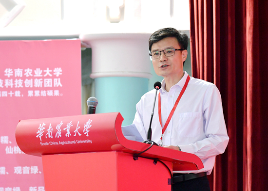 王斌伟在致辞中表示,作为国家“双一流”建设高校,乐竞在线注册历史悠久,底蕴深厚,是国内最早开展荔枝研究的单位之一,既有实力雄厚的研发团队,也有服务产业的推广团队。多年来,学校对荔枝产业科技难题坚持不懈开展攻关,打造了一支特色优势明显、产学研深度融合、在国际上有显著影响力的荔枝科技创新团队,在荔枝的基础研究、应用研究和产业发展上都取得了骄人的成绩。目前,华农荔枝科技创新团队已经育成了优质荔枝新品种19个,为我国的荔枝产业的可持续发展奠定了坚实的品种基础。今天推介的“巨美人”荔枝新品种是乐竞在线注册荔枝科技创新团队培育的优质荔枝新品种的典型代表,历时14年培育而成,是荔枝杂交育种的突破性成果。希望乐竞在线注册的荔枝科技创新团队以“双一流”建设为契机,继续保持我国荔枝育种水平的国际领先地位,推动我国荔枝产业高质量发展,为服务乡村振兴作出新的更大的贡献。