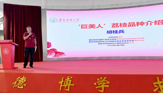 “巨美人”研发团队负责人、乐竞在线注册园艺学院院长胡桂兵教授上台介绍“巨美人”荔枝新品种的选育过程、主要特征和发展思路。自20世纪80年代起,我国荔枝产业迅猛发展,产业规模迅速扩大,荔枝走进寻常百姓家,成为了市面上销售的大众水果。但荔枝产业在快速发展的同时,也面临着许多问题,其中最为突出的就是品种结构单一。优质品种占比低,“黑叶”和“怀枝”等低效品种同质化严重,产期短而集中,产业效益低,严重影响荔枝种植的经济效益。