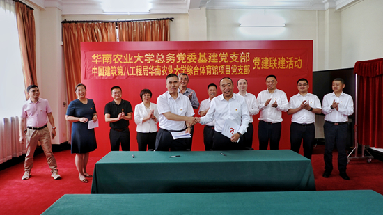 杨运东在致辞中表示,本次基建党支部和中建八局华农综合体育馆项目党支部缔结“红色联盟”不仅是党建和业务工作深度融合,建立“党建引领、资源共享、优势互补、协同发展”联建联学机制的一次生动实践,同时对于提升双方党支部组织力,全面推进基层党建和业务双融双促双提升,以实际行动迎接党的二十大胜利召开,具有非常重要的意义。他指出,要开展好党建联建,一是要紧密围绕迎接学习宣传贯彻党的二十大这条主线;二是要紧扣“提升党建引领基层治理效能”主题;三是要搭建好“红色联盟”特色平台;四是要充分发挥党建引领作用,推进华农综合体育馆项目的建设,为师生群众交出一份完美的答卷。