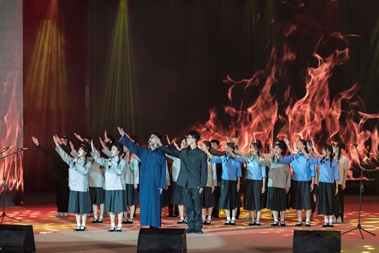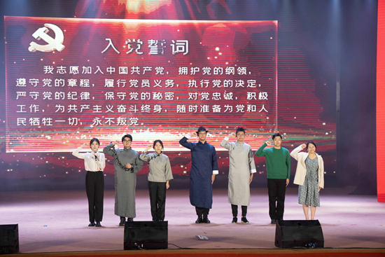“我志愿加入中国共产党!”“请党放心,强国有我!”一声声铿锵有力的誓言,让青年的热血沸腾。真挚洋溢的情感,大气磅礴的演出,对历史生动形象的再现……同学们的精彩表演,获得了在场观众的阵阵掌声。