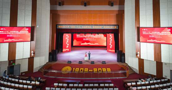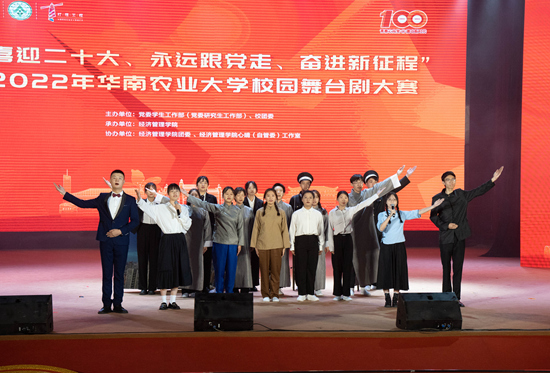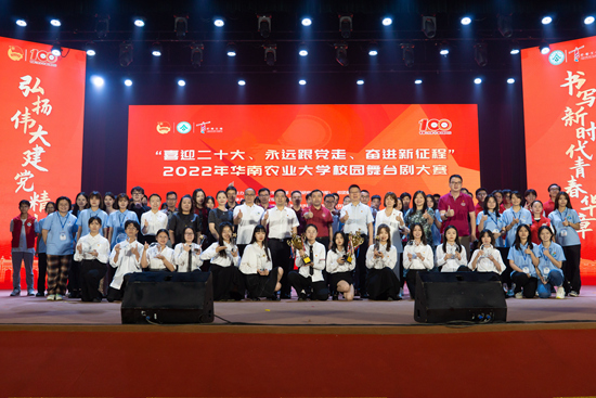 5月22日晚,丁颖礼堂内灯火璀璨。为深入学习贯彻习近平新时代中国特色社会主义思想和党的十九届六中全会精神,迎接党的二十大胜利召开,庆祝中国共青团成立100周年,团结引领广大青少年坚定跟党走、建功新时代,学校举办了“喜迎二十大、永远跟党走、奋进新征程”主题校园舞台剧大赛。校党委副书记邓国安出席活动。