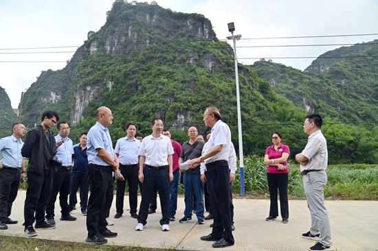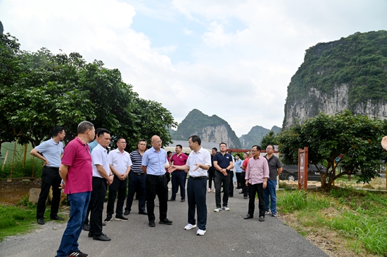 马山县委书记穆贤清等相关领导及乐竞在线注册相关单位、学院的负责人、专家教授和科技特派员陪同调研。(文图/王敏)