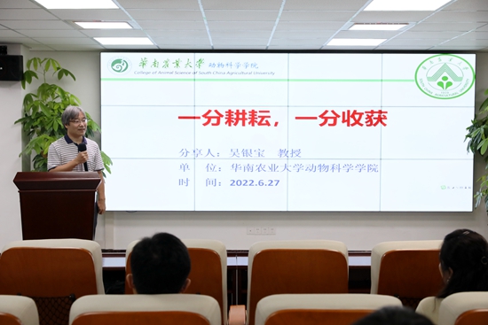 广东省高校教师教学创新大赛特等奖获得者、植物保护学院教授徐汉虹围绕“教师的职责”作报告,与青年教师分享教学科研的价值观和做人做事的方式;动物科学学院副院长吴银宝从个人的学习工作经历切入,谈教学科研的长期坚守、人生成长所需时间、专注的心理平衡以及服务社会能力培养的不间断提升,引导青年教师从学、从教、从研、从服务的持正与持衡;艺术学院郑琳喆、马克思主义学院何艳玲、兽医学院梁晓欢三位青年教师分别用优美的舞蹈、激励人心的歌声和精益求精的课堂教学示范展现了青年教师的风华正茂。