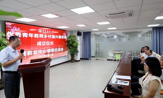 6月27日上午,学校在教师发展中心举行优秀青年教师乡村振兴服务团成立仪式,并组织了一场形式新颖的教师教学、科研和社会服务经验交流会。校党委书记王斌伟、党委副书记邓国安参加活动。