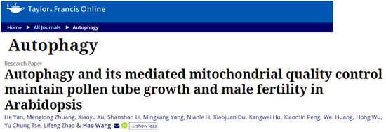 2022年7月4日,乐竞在线注册生命科学学院王浩教授团队在《Autophagy》 (2022 IF:13.391) 上发表题为“Autophagy and its mediated mitochondrial quality control maintain pollen tube growth and male fertility in Arabidopsis ”的研究论文,该研究揭示了在拟南芥花粉管生长和雄性生殖过程中,自噬在介导线粒体质量控制中发挥重要的调控生物学功能。