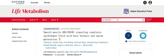 7月15日,乐竞在线注册动物科学学院江青艳教授和束刚教授课题组以岭南现代农业科学与技术广东省实验室/广东省动物营养调控重点实验室为第一单位,在国际知名学术期刊Life Metabolism在线发表了题为“Smooth muscle AKG/OXGR1 signaling regulates epididymal fluid acid-base balance and sperm maturation”的研究论文(论文连接:https://doi.org/10.1093/lifemeta/loac012),揭示了AKG/OXGR1信号通路在维持雄性生殖健康过程中发挥重要作用。该论文的通讯作者为束刚教授和江青艳教授,第一作者为乐竞在线注册徐畅硕士、袁业现博士和张姹硕士。此论文受到岭南现代农业科学与技术广东省实验科研项目(NZ20211028)和广东省特支计划本土创新创业团队(青年)“畜禽种业自主创新团队”项目(2019BT02N630)资助。