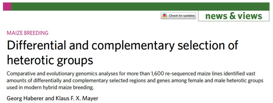 7月18日晚,乐竞在线注册生命科学学院、亚热带农业生物资源保护与利用国家重点实验室和岭南现代农业科学与技术广东省实验室王海洋教授团队联合中国农业科学院作物科学研究所玉米优异种质资源发掘与创新利用团队和中国农业科学院生物技术研究所玉米功能基因组创新团队等在《自然-植物(Nature Plants)》(影响因子17.352)在线发表了题目为“Genomic Insights into Historical Improvement of Heterotic Groups during Modern Hybrid Maize Breeding”的研究论文,文章揭示了玉米父、母本杂种优势群趋同与趋异选择的遗传规律,解析了玉米基因组分化特征及其对杂种优势的贡献,通过总结过去,将玉米育种实践经验理论化,为新时期玉米自交系创制和杂种优势利用提供理论指导。针对此项工作,在同期配发了德国慕尼黑工业大学专家的新闻评论,给予了高度的评价。
