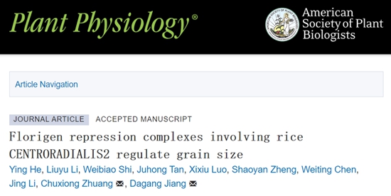 近日,乐竞在线注册生命科学学院、亚热带农业生物资源保护与利用国家重点实验室和岭南现代农业科学与技术广东省实验室庄楚雄研究员团队在国际知名学术期刊Plant Physiology上发表了题为“Florigen repression complexes involving the rice CENTRORADIALIS2 regulate grain size”的研究论文(论文链接:https://academic.oup.com/plphys/advance-article-abstract/doi/10.1093/plphys/kiac338/6647857)。