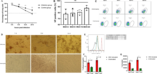 研究人员通过体内实验研究发现H5N1 AIV感染麻鸭后,随着病毒排毒载量逐渐下降,CD8+细胞比例和细胞毒性基因表达明显上调,尤其是PBMC中CD8high+细胞群比例显著上调。研究人员进一步通过流式分选和Smart seq II 单细胞转录组学技术调查鸭CD8+细胞异质性和基因表达差异性发现,相比CD4+细胞和CD8low+细胞,CD8high+细胞对H5N1 AIV应答反应可能更敏感。而且,研究人员首次在体外培养出H5N1 AIV特异性鸭T细胞,并在体外证实随着鸭T细胞的活化和应答,CD8high+细胞群明显增加,与体内实验结果一致。因此,鸭CD8high+细胞在抵抗H5N1 AIV感染中起到了潜在重要作用。该研究发现为开发有效的 H5N1 AIV 疫苗提供了新的方向。