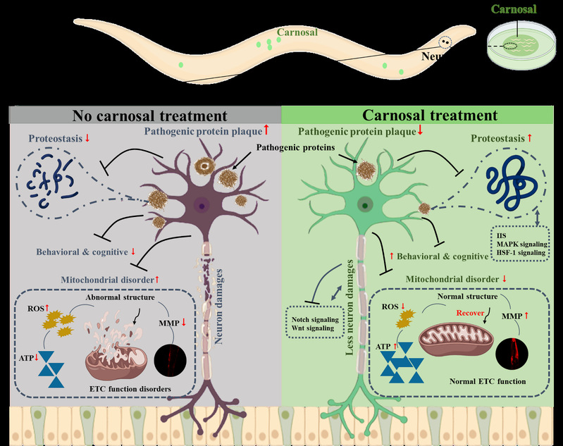 该研究利用AD线虫模型揭示了CA延缓Aβ神经毒性的作用及潜在机制。研究结果表明CA能抑制Aβ异常积累,延缓线虫瘫痪并保护神经元免受Aβ诱导的神经毒性影响。并且,CA可通过降低ace-1和ace-2基因的表达,上调cha-1和unc-17基因以抑制乙酰胆碱酯酶活性,缓解Aβ引起的胆碱能系统缺陷。此外,CA还可能通过上调phb-1、phb-2、eat-3和drp-1基因的表达来改善Aβ诱导的线粒体动态网络失衡及氧化应激损伤。