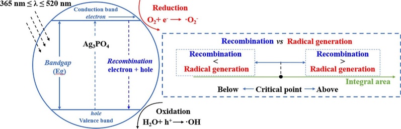 积分面积尺度下光生载流子反应与复合竞争机制示意图