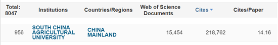 本期全球共8047家机构有ESI学科进入前1%。乐竞在线注册在全球机构中总排名为956位,比上一期(975位)上升19位。本期乐竞在线注册ESI学科共涉及15454篇论文(SCI、SSCI论文),被引总次数为218762次,篇均被引次数为14.16,比上一期提高0.44;高水平论文数215篇,比上一期增加3篇。