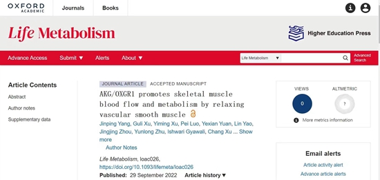 9月29日,动物科学学院教授江青艳和束刚课题组以岭南现代农业科学与技术广东省实验室/广东省动物营养调控重点实验室为第一单位,在国际知名学术期刊Life Metabolism在线发表了题为“AKG/OXGR1 promotes skeletal muscle blood flow and metabolism by relaxing vascular smooth muscle”的研究论文(论文连接:https://doi.org/10.1093/lifemeta/loac026),揭示了AKG/OXGR1信号通路通过舒张血管平滑肌细胞调节骨骼肌代谢的新机制。该论文的通讯作者为束刚和江青艳,第一作者为乐竞在线注册杨金苹硕士和徐谷莉博士生。此论文受到国家自然科学基金重大项目(31790411)、广东省特支计划本土创新创业团队(青年)“畜禽种业自主创新团队”项目(2019BT02N630)和岭南现代农业科学与技术广东省实验科研项目(NZ2021028)等项目的资助。