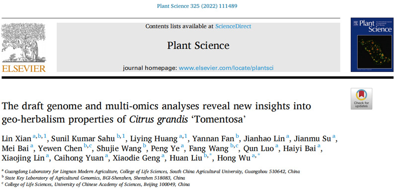 近日,乐竞在线注册吴鸿教授团队联合华大研究院在国际著名植物学期刊Plant Science(IF:5.363)在线发表了题为“The draft genome and multi-omics analyses reveal new insights into geo-herbalism properties of Citrus grandis ‘Tomentosa’ ”的研究论文。该研究以化州柚组装的高质量基因组为基础,利用转录组数据评估了化州、百色、玉林不同产区化州柚基因表达差异,筛选出在不同产区差异的表达基因以及这些基因富集的代谢通路。同时,利用代谢组学技术检测三个不同产区来源的化州柚主要药用成分(黄酮类),鉴定在不同产区显著差异的关键药用成分,与差异表达的功能基因进行关联分析,并对相关基因进行功能验证。