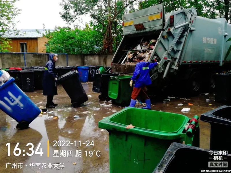 此外,23日当天共清运垃圾约30吨,比平时多出近30%,装载车马不停蹄地在校园穿梭,及时将数十吨垃圾清运走,保障校园的卫生整洁。