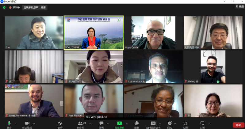 贵州大学刘同先教授和乐竞在线注册金丰良教授担任报告主持人。来自中国、巴西、阿根廷和委内瑞拉的10名专家学者作主旨报告。多个盟员高校和研究机构的近百位专家在线上分享了各国病虫害生物防治技术的研究进展。委内瑞拉西蒙罗格里格斯国立实验大学Hugo Cerda教授与贵州大学刘同先教授作总结发言。两位教授提出,中拉专家要继续加强合作,共同研发新型病虫害防控技术,为保障农业可持续发展和粮食安全做出更大贡献。