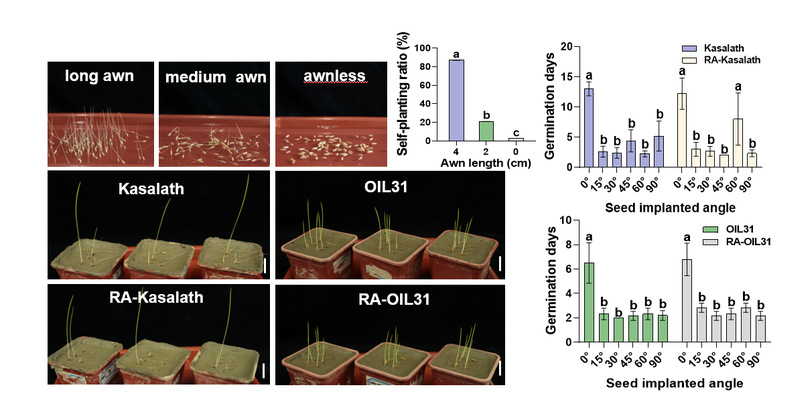 生存和繁衍是一切生物的本能追求。自然界中,种子传播和萌发对植物生存和繁衍至关重要。植物进化出了一系列精妙的机制来促进种子传播和萌发,其中很多与种子特性有关,如种子顶端芒的发育、落粒性和种子休眠等。一旦种子成熟,便会从母体脱落,在芒和其他种子附属物帮助下向更远的地方传播,并在合适环境下萌发。前人研究表明,小麦芒通过响应外界湿度变化将种子推入潮湿的土壤,促进种子萌发;一些禾本科牧草芒长与种子萌发也有显著相关性。然而,水稻芒对种子的萌发及与种子萌发效率是否存在关联至今仍未有报道。