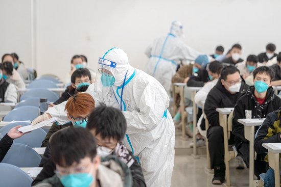 “疫情下的研考工作不容易,在学校有需要、考生有需要的时候,我们肯定要积极参与。”王长明是学校教职工抗疫应急突击队的一员,12月16日收到征集研考监考员的通知后,从未感染过病毒的他没有半分犹豫,马上报名参加,并在考前接受了考务工作培训、疫情防控工作培训。24日开始,王长明在隔离考场负责监考。“为核酸检测阳性的考生安心参加考试出一份力,我很开心。”王长明说,“今年的考生不容易,祝同学们都能如愿以偿!”