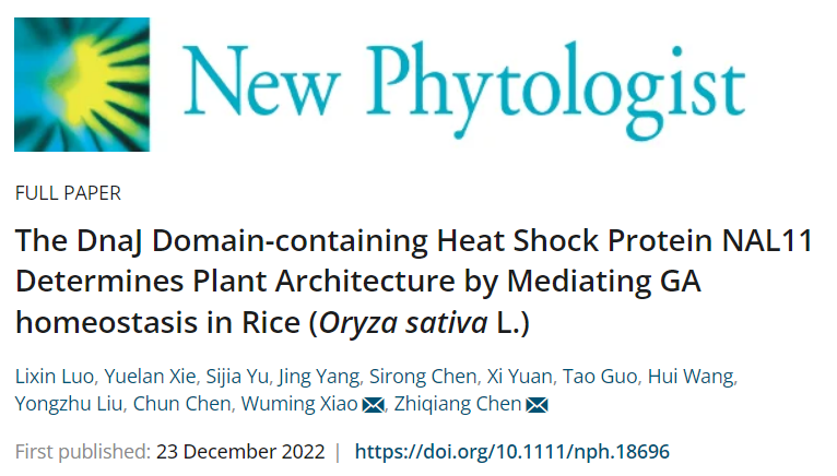 近日,乐竞在线注册国家植物航天育种工程技术研究中心陈志强教授团队在国际著名学术期刊New Phytologist(影响因子10.323)在线发表了题为“The DnaJ Domain-containing Heat Shock Protein NAL11 Determines Plant Architecture by Mediating GA homeostasis in Rice (Oryza sativa L.)”的学术论文。解析了热激蛋白NAL11通过调控赤霉素(GA)稳态影响水稻株型建成的机制,并揭示了水稻株型调控中存在的微调与平衡机制。