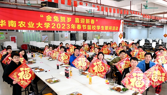 学校十分重视寒假留校学生服务工作。在学校党委部署下,党委学生工作部(党委研究生工作部)与总务部等职能部门密切配合,组织开展了 “喜迎新春·情暖华农”2023年寒假关爱留校学生系列活动。元旦以来,已经进行了校领导走访慰问活动和新春游园活动,为部分留校学生派发了新春红包。据了解,除夕和春节,学校还为留校学生提供“学生免费餐券”,同学们可凭券到学校西园、绿榕园、莘园饭堂享用免费三餐。同时,各学院也根据实际情况自主组织开展了丰富的假期留校学生关怀活动,由学院领导、研究生导师、辅导员深入走访实验室和学生宿舍,关心慰问留校学生,确保留校学生度过一个欢乐、祥和、充实、安全的寒假,在学校也能感受到家的温暖。