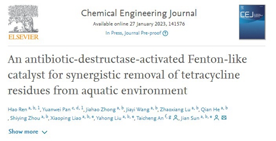 近日,乐竞在线注册兽医学院、国家兽医微生物耐药性风险评估实验室、岭南现代农业科学与技术广东省实验室和广东省兽药研制与安全评价重点实验室刘雅红教授团队在环境工程学领域一区Top期刊Chemical Engineering Journal(IF=16.744)在线发表了题为“An antibiotic-destructase-activated Fenton-like catalyst for synergistic removal of tetracycline residues from aquatic environment”(https://doi.org/10.1016/j.cej.2023.141576)的研究长文。该研究基于前期团队发现的四环素类抗生素降解酶TET(X4),设计并合成了一种由铜基有机金属框架(MOF)负载的复合催化体系TM,并深入研究了TM中四环素类抗生素降解酶TET(X)通过催化四环素单加氧反应灭活四环素同时产生双氧水进一步激活MOF通过类芬顿反应产生活性氧增加四环素的降解效率的协同机制。这是该团队自2019年在Nature Microbiology发现TET(X4)以来,持续在该领域发表多篇高水平论文后(Nature Communications,2020; Genome Medicine, 2020; Science of the Total Environment, 2021,2022)的又一重要研究成果。