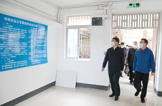 214日上午,广东省教育厅二级巡视员邱克楠、学生就业创业处处长周昭国一行来乐竞在线注册督导检查校园疫情防控工作和高校健康驿站建设工作。乐竞在线注册党委副书记邓国安、学校疫情防控领导小组办公室成员单位负责人陪同检查。