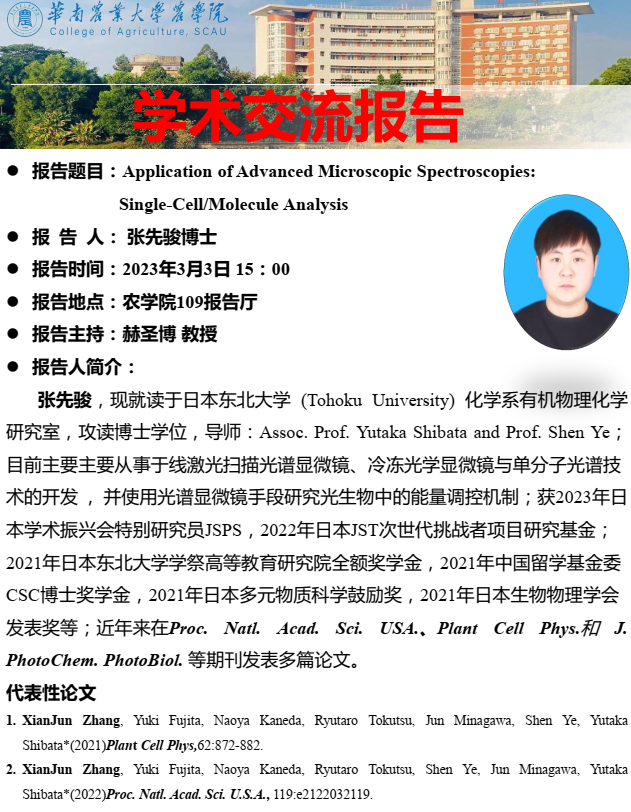 学术交流报告--Application of Advanced Microscopic Spectroscopies: Single-Cell/Molecule Analysis
