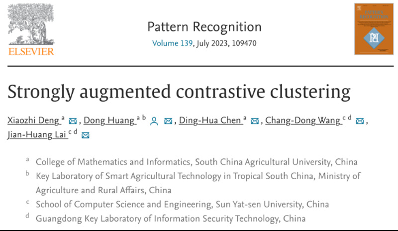 团队在中科院一区期刊Pattern Recognition(影响因子8.518)上正式发表了题为“Strongly augmented contrastive clustering”的研究论文(论文链接:https://www.sciencedirect.com/science/article/abs/pii/S003132032300170X)。该论文的通讯作者为黄栋副教授,第一作者为乐竞在线注册硕士研究生邓小智。