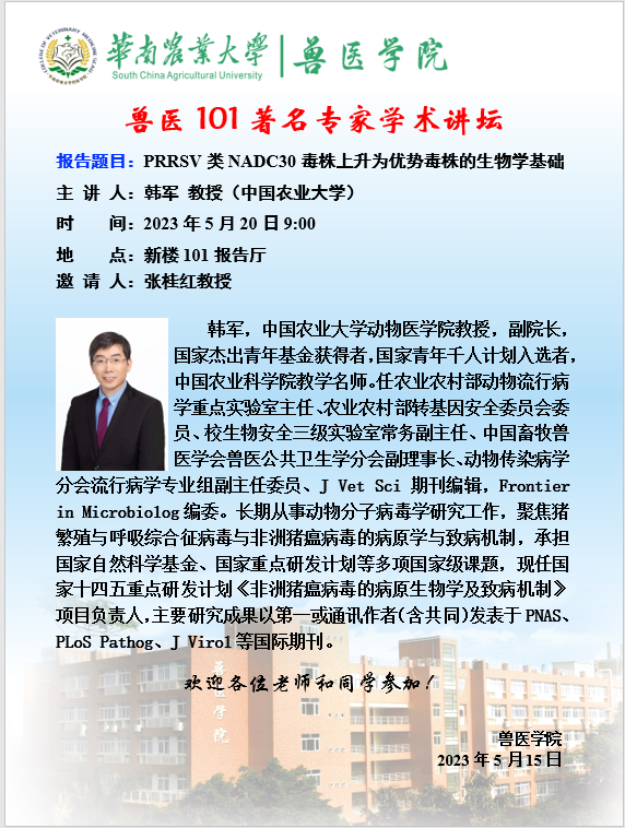 兽医101著名专家学术讲坛--PRRSV类NADC30毒株上升为优势毒株的生物学基础