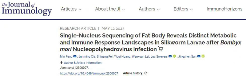 近日,乐竞在线注册动物科学学院家蚕病毒研究团队在国际免疫学权威学术期刊The Journal of Immunology发表题为“Single-Nucleus Sequencing of Fat Body Reveals Distinct Metabolic and Immune Response Landscapes in Silkworm Larvae after Bombyx mori Nucleopolyhedrovirus Infection”的研究论文(论文链接:https://doi.org/10.4049/jimmunol.2300007)。该研究利用单细胞核转录组测序技术等手段首次系统鉴定了家蚕重要免疫器官和代谢器官-脂肪体的细胞类型,成功构建了家蚕脂肪体的细胞图谱,并揭示了家蚕脂肪体各细胞亚群对家蚕核型多角体病毒BmNPV感染的响应机制。