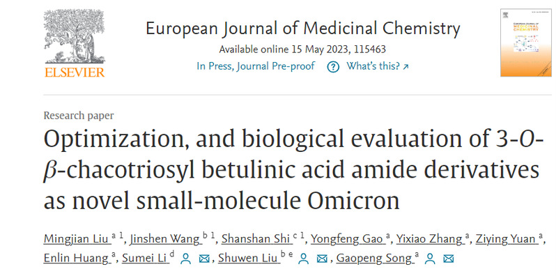 近日,乐竞在线注册材料与能源学院制药工程系宋高鹏副教授在药物化学领域国际权威期刊European Journal of Medicinal Chemistry(影响因子7.088,中科院1区Top期刊)在线发表了题为“Optimization, and biological evaluation of 3-O-β-chacotriosyl betulinic acid amide derivatives as novel small-molecule Omicron”的研究论文(论文链接:https://doi.org/10.1016/j.ejmech.2023.115463),发现了一类基于马铃薯三糖桦木酸皂苷为结构骨架的新型小分子Omicron融合抑制剂。本研究是该团队在抗新冠病毒药物研究领域继Bioorganic Chemistry(2023, 131, 106316,中科院1区Top期刊)及European Journal of Medicinal Chemistry(2022, 238, 114426; 2021, 215, 113242)之后的又一标志性研究成果。