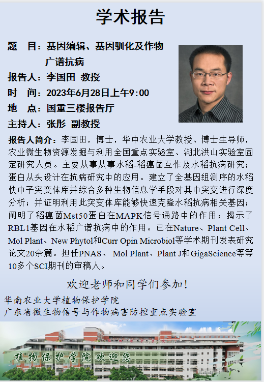 植保名家论坛第17期:基因编辑、基因驯化及作物广谱抗病