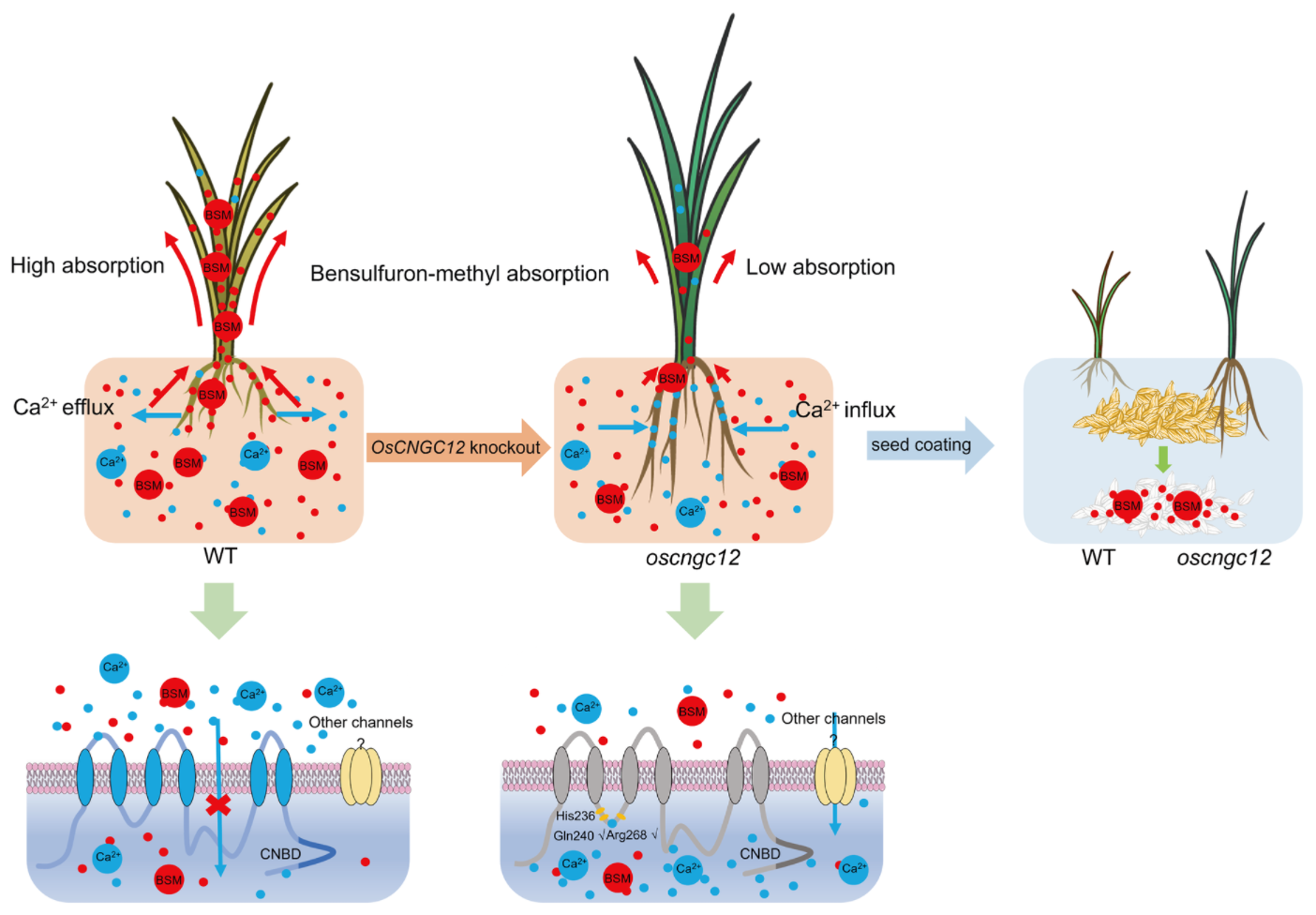 OsCNGC12基因的缺失赋予水稻幼苗期对苄嘧磺隆抗性的机制