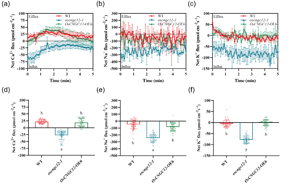 苄嘧磺隆处理下OsCNGC12基因型水稻根系阳离子通量变化