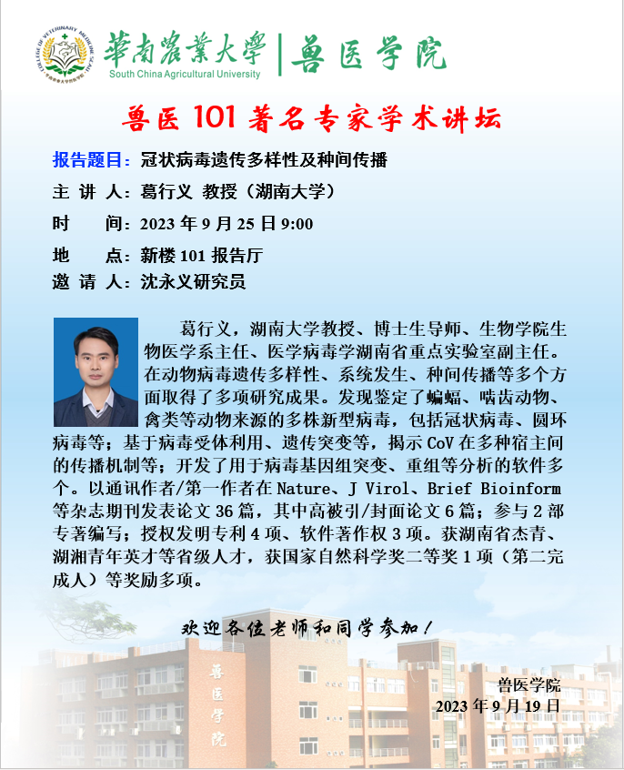 兽医101著名专家学术讲坛--冠状病毒遗传多样性及种间传播