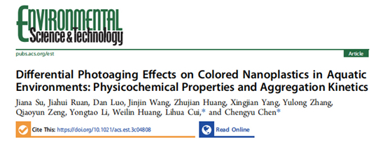近日,乐竞在线注册资源环境学院环境科学与工程系崔理华教授与陈澄宇副教授团队在环境科学与生态学一区Top期刊Environmental Science & Technology(IF: 11.4)上发表了题为“Differential Photoaging Effects on Colored Nanoplastics in Aquatic Environments: Physicochemical Properties and Aggregation Kinetics” (论文链接:https://pubs.acs.org/doi/full/10.1021/acs.est.3c04808)的研究论文,并入选期刊封面。该研究是继“Aggregation Kinetics of TiO2 Nanoparticles in Human and Artificial Sweat Solutions: Effects of Particle Properties and Sweat Constituents”(论文链接https://pubs.acs.org/doi/full/10.1021/acs.est.2c05237)后在Environmental Science & Technology期刊上发表的另一篇封面文章。
