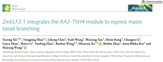 10月19日,乐竞在线注册生命科学学院、亚热带农业生物资源保护与利用国家重点实验室和岭南现代农业科学与技术广东省实验室王海洋教授团队联合中国农业科学院生物技术研究所在国际知名期刊《New Phytologist》在线发表了题目为“ZmELF3.1 integrates the RA2-TSH4 module to repress maize tassel branching”的研究论文(论文链接:https://nph.onlinelibrary.wiley.com/doi/10.1111/nph.19329),文章揭示了光周期响应因子ZmELF3.1调控玉米雄穗分枝数目的分子机制,为玉米雄穗分枝数的遗传改良提供了潜在的基因资源。