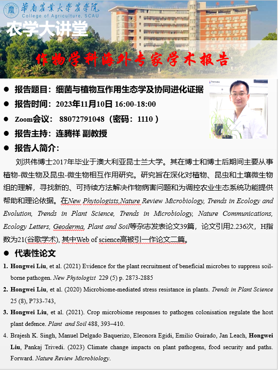 作物学科海外专家学术报告--细菌与植物互作用生态学及协同进化证据