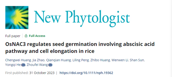 近日,农学院王州飞教授团队在国际知名学术期刊New Phytologist在线发表了题为“OsNAC3 regulates seed germination involving abscisic acid pathway and cell elongation in rice”的研究论文(论文链接:https://nph.onlinelibrary.wiley.com/doi/10.1111/nph.19362)。该研究揭示了OsNAC3调控水稻种子萌发的分子机制,并明确了其在育种中的利用价值。